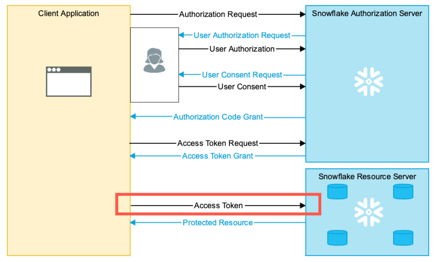 Snowflake-OAuth-Workflow mit hervorgehobener Anforderung