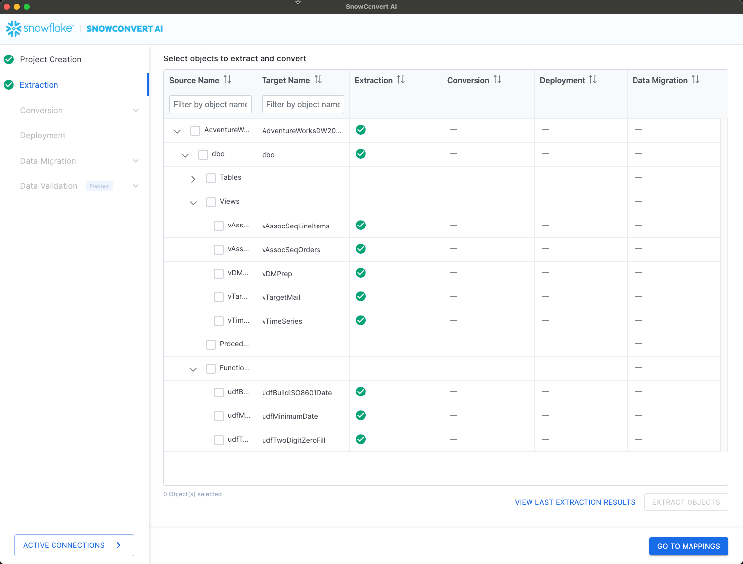 This feature is the first step in the end-to-end migration process, allowing you to select and extract the specific database objects you want to migrate to Snowflake.