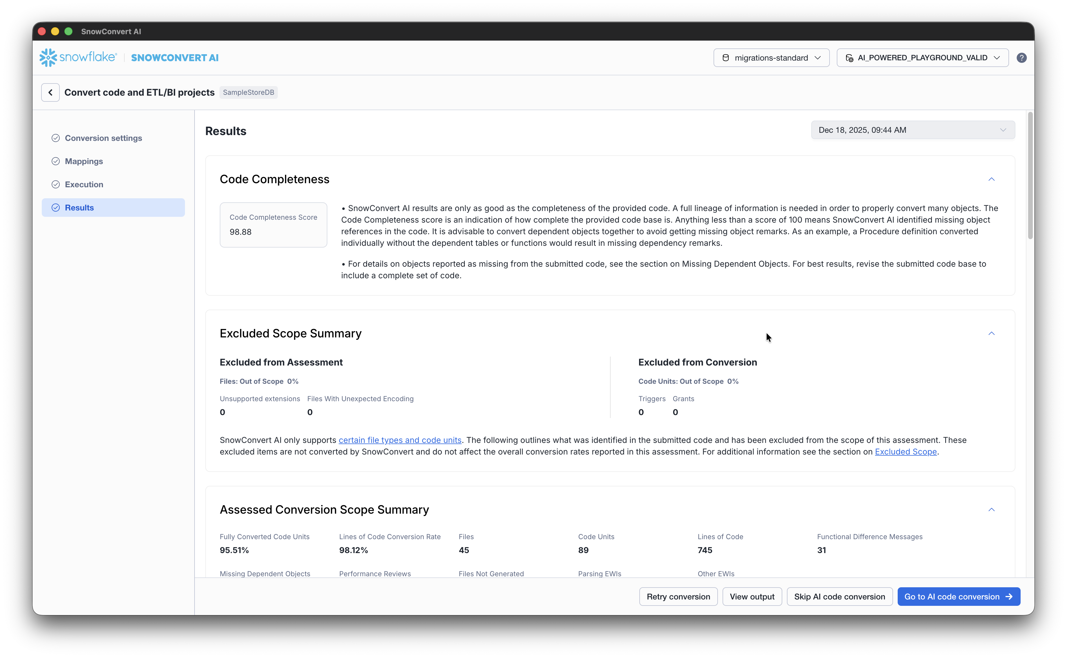 After the code conversion is complete, select GO TO AI code conversion from the Results page.