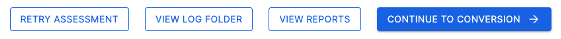 Continue to Conversion - While this may seem like the next logical step, it’s important to review the assessment results thoroughly before proceeding. Note that running a conversion requires an access code. For more information, see the conversion section of this documentation.