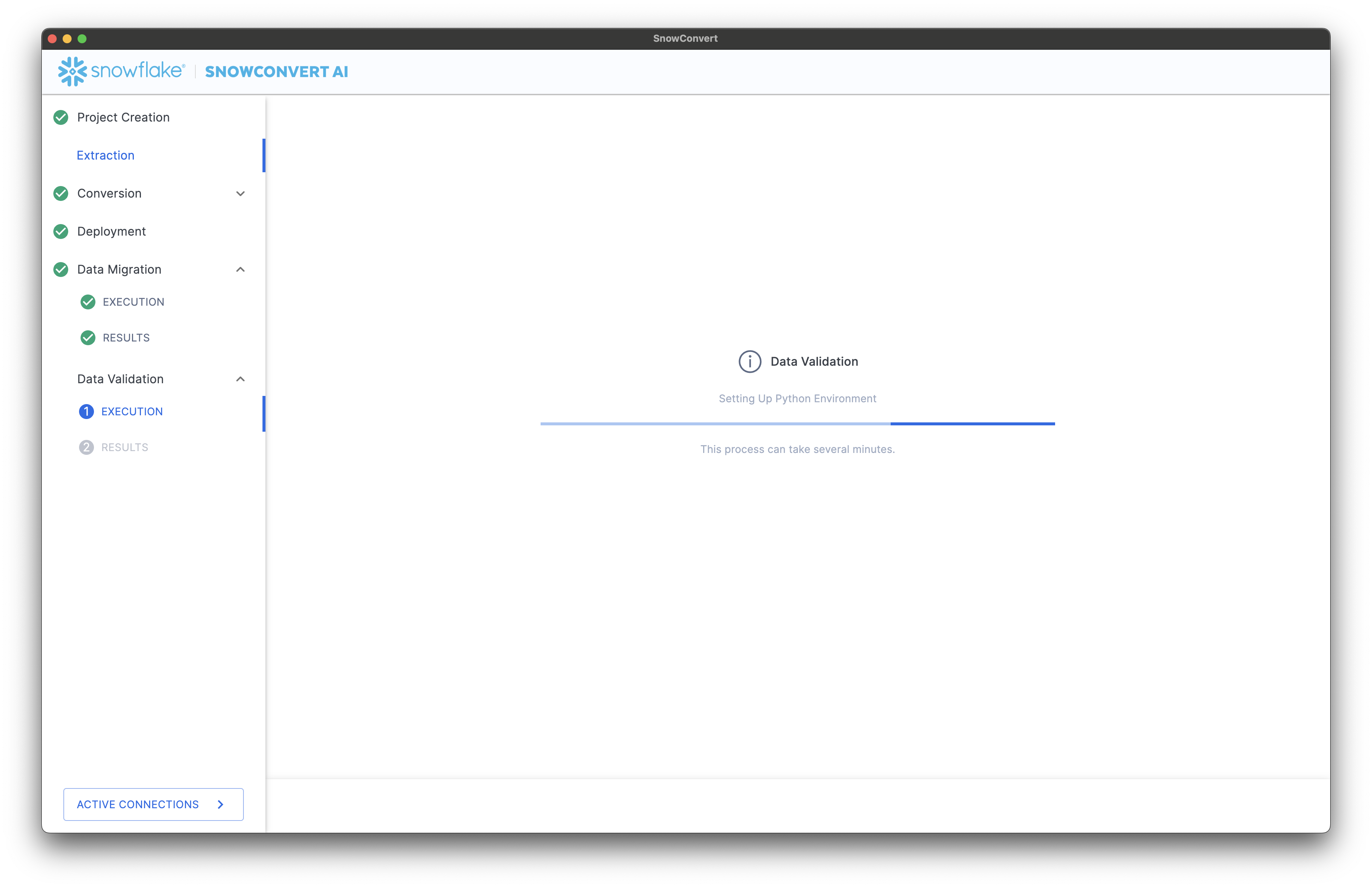 Once the Validate Data step initiates, it will verify that you have Python available and will set up a virtual environment to execute the Data Validation tool.