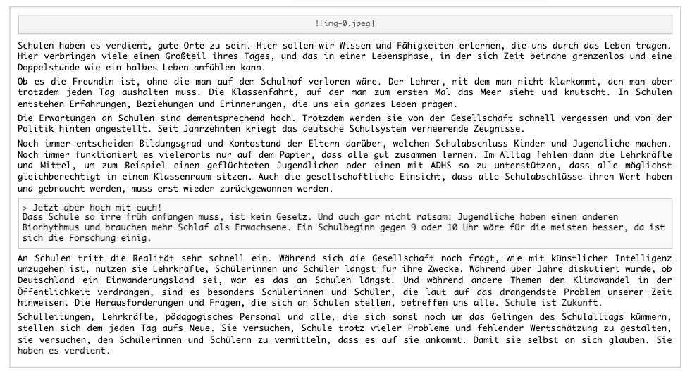 Este exemplo usa o modo LAYOUT da AI_PARSE_DOCUMENT para processar um trabalho de pesquisa de duas colunas. O parâmetro page_split