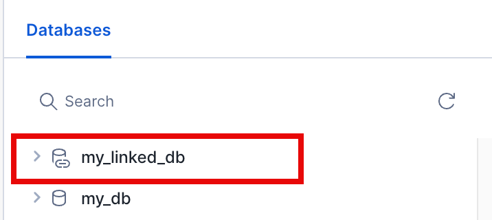 Seu banco de dados vinculado a catálogo inclui um ícone de link.